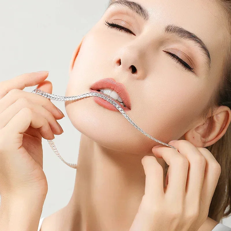 18K Gold color Silver Color 6mm Full Sideways Necklace 8/18/20/24 Inch Chain For Woman Men Fashion Wedding Engagement Jewelry