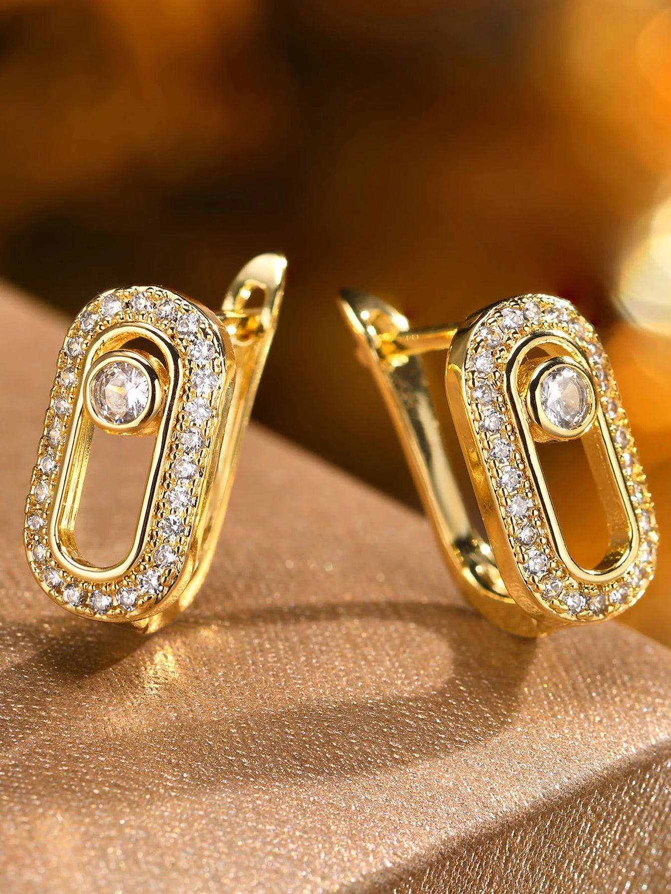 2PCS Women Geometric Small Hoops Earrings Paperclip Shape Metal Earrings CZ Stones Shiny Girls Party Jewelry set