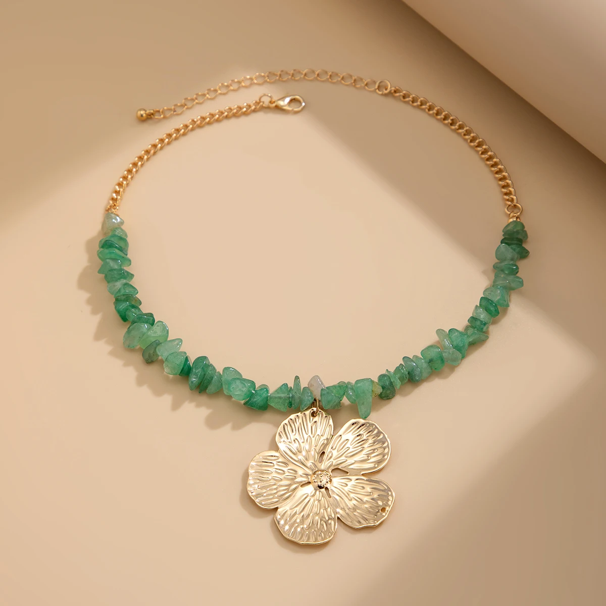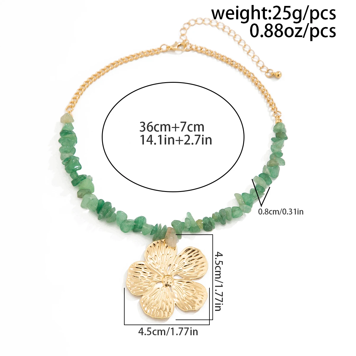 Ingemark Bohemian Crushed Stones Chain Big Flower Pendant Necklace Women Exquisite Trendy Summer Beach Club Party Jewelry Gifts