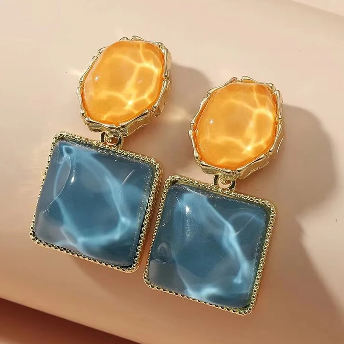 Women Round Square Crystal Stone Drop Earrings Pink Orange Olive Blue Bright Colorful Glass Stone Dangle Earrings Trendy Jewelry